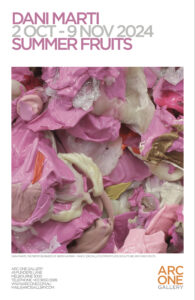 As a child, Marti had a similar revelation, as his father was a doctor and a pioneer of laparoscopy. His father’s diagnostic slides introduced the young Marti to dramatically lit, cavernous landscapes within the body—livers, fat deposits, and curious greenish hues, all decorating the slick walls of our insides. In his exhibition Summer Fruits, Marti takes this internal landscape and extrapolates it. The series Messy business of being Human captures the vivid beauty of this memory. These works evoke a psychological moment of simultaneous repulsion and attraction, a budding narrative of sexuality and the dizzy discovery of self. For Marti, the colour pink is arriscada, which means ‘risky’ in Catalan. A brash, erotic colour—pink is political and gendered. No one is neutral about pink. Despite its divisive social function, Marti considers pink a universal colour. Turn us inside out, we’re all pink under the skin.