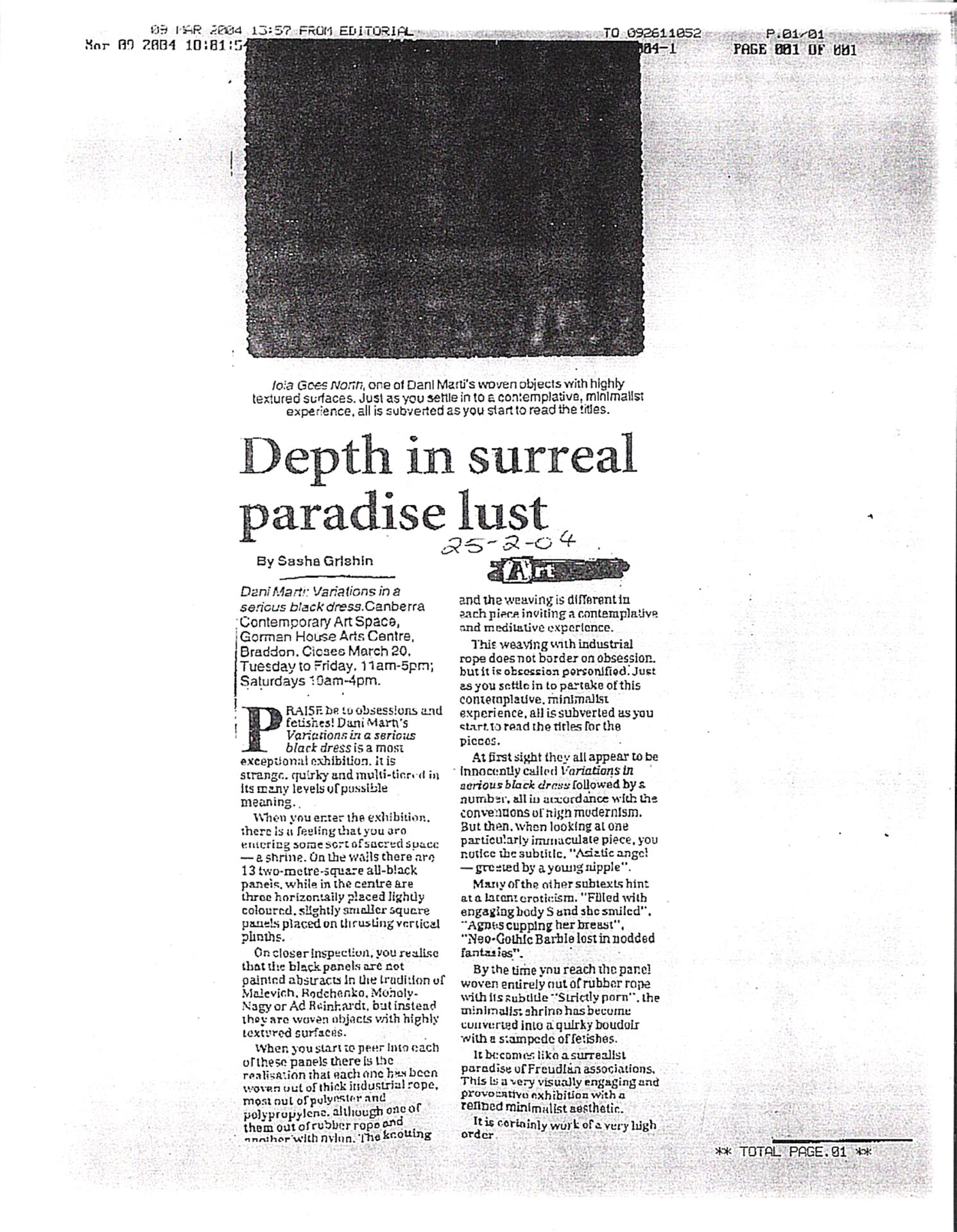 Praise be to obsessions and fetiches! Dani Marti’s Variations in a Serious Black Dress is a most exceptional exhibition . It is strange, quirky and muti-tiered in it’s many levels of possible meaning.